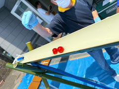 途中、プチトマト・ゼリー、うずらの卵が流れて、益々難易度アップ。