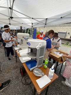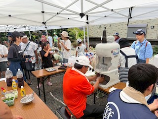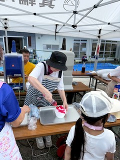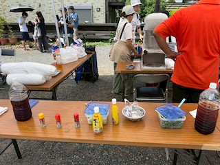 流しソーメンが始まるまでに「かき氷」でお腹の準備(?)を整えて、いざ流しソーメンに突入!!