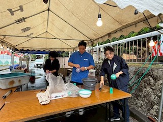 1日目は抽選会で盛り上がり無事終わりました。個人的な感想ですが…悪天候の割には多くの方がたがいらしてくださったように感じました。