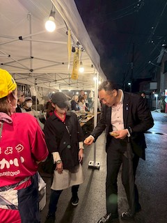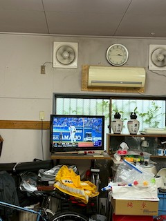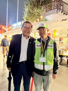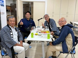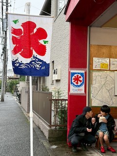 消防小屋では「かき氷を食べながらジャイアンツとベイスターズのパブリックビューイングはいかが?」と、新しい客寄せのアイデアに『なるほど〜』と感心。消防小屋の前では、消防車をバックに写真撮影ができるし、集会所の中では神輿を前にハッピを来て家族写真も撮れる等、嬉しいことだらけ(^。^)