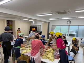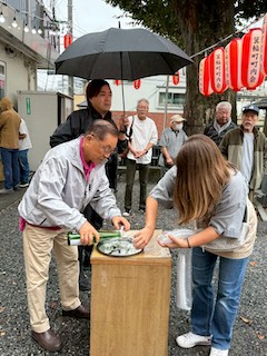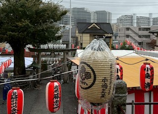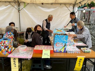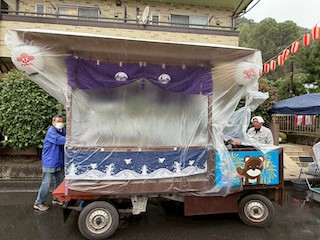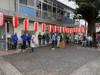 急ぎ、14:30に最初の神輿・山車の出発地点である「舟下公園」に行き、集まってくれた子どもたちにいつもより多くの(売店で使える)金券を配布。神社ではお菓子もプレゼント♪