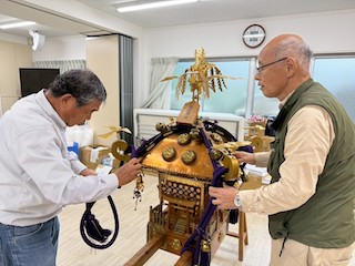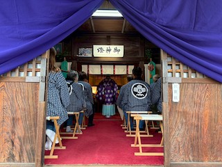今年の『御魂入れ』の儀式は集会所の中で執り行いました。宮司さんの「フォーーーーー」という声に導かれて神社の中の神様が神輿に移るのです。(実はワタクシはこの御魂入れの儀が大好きで毎年楽しみにしているのです♡)