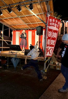 神輿と山車は中止になりましたが、夜は予定通り『子どもカラオケ・大人カラオケ』をやりましたよ。