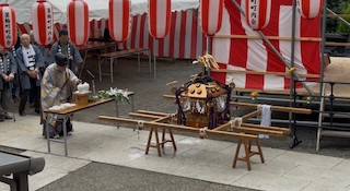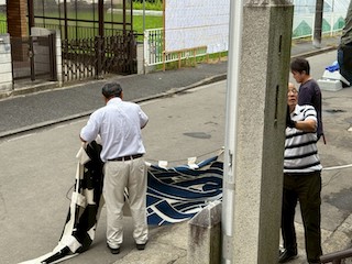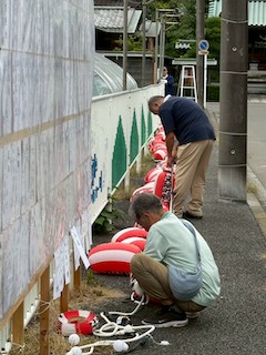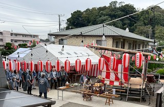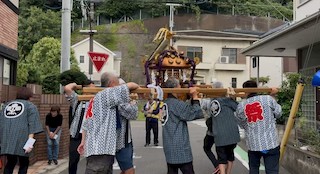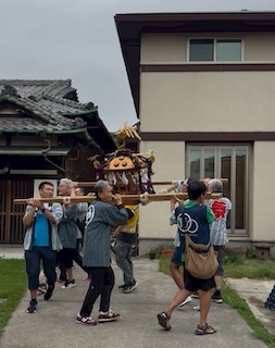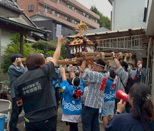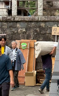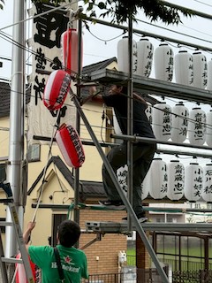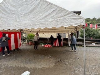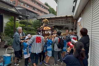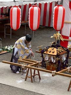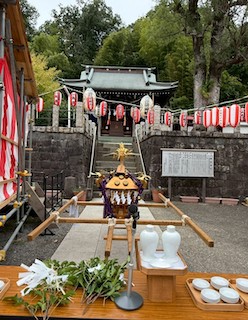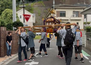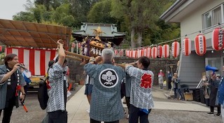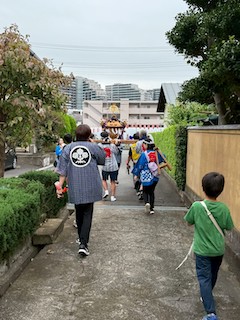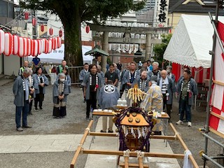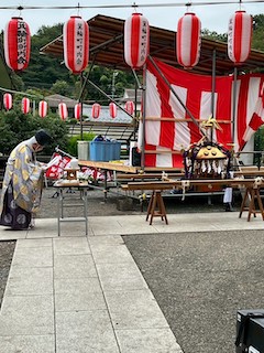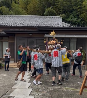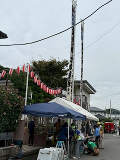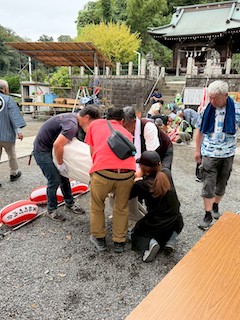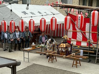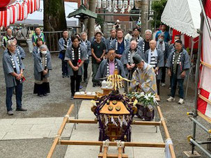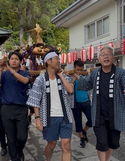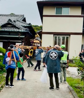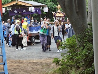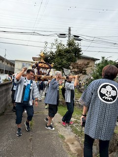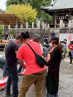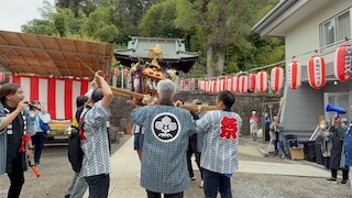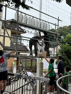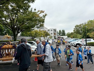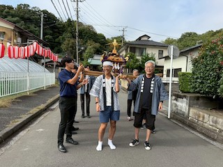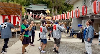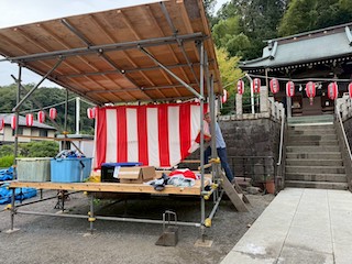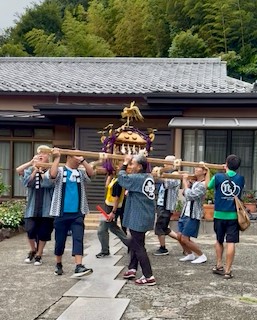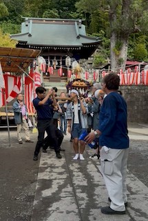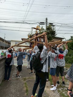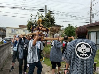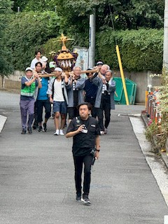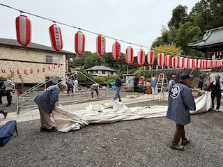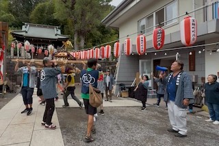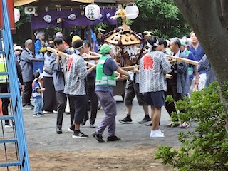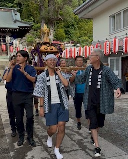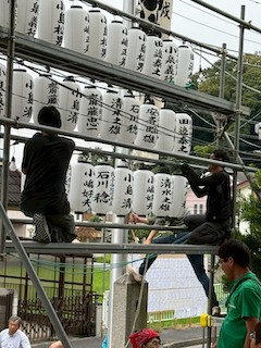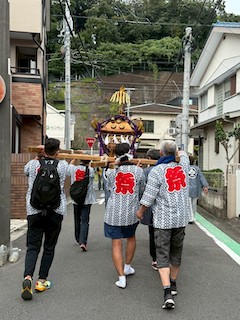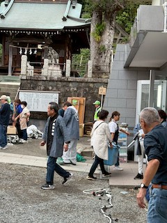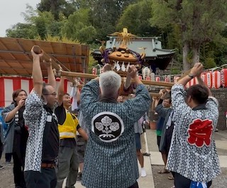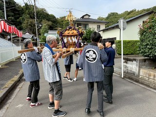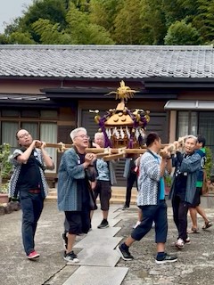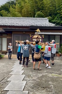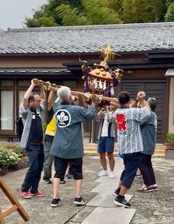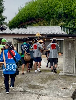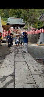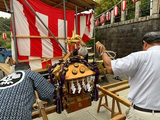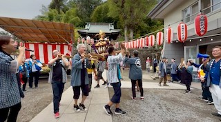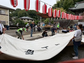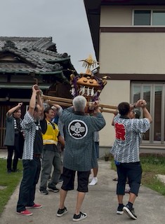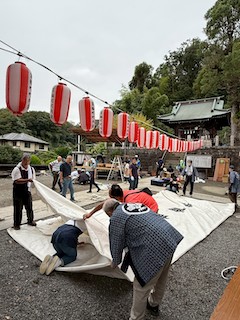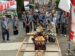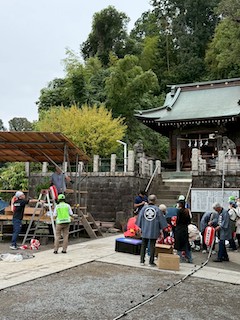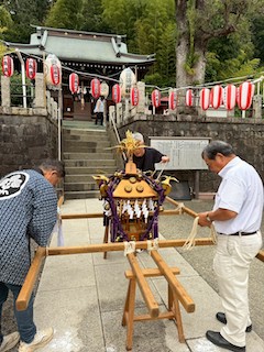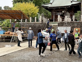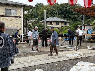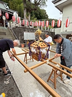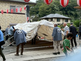 お祭りは終わりましたが、即、片付けです。 皆の協力のもと、夕方にはまたもとの神社に戻りましたよ。