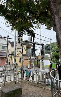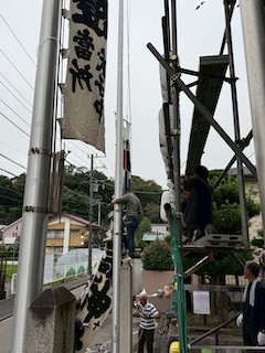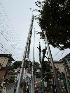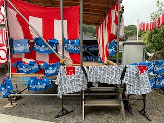 氏子の役員さんたちは更に翌13日も最後の片付けがあり、次は『七五三』のお祝いの旗飾りが登場です。そうそう、箕輪町の『七五三』は何組かまとめてお祝いをするのではなくて、1組ずつお祝いをしてくれるそうですよ。氏子総代が「それが自慢」と申しておりました。《七五三のお祝いは是非箕輪町で(^.^)v》