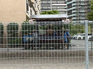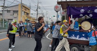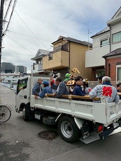 昨日は雨で2丁目を周れませんでしたから、神輿をトラックに乗せて、周りました。